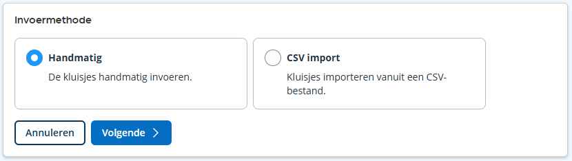 Naast het handmatig aanmaken van kluisje, is het ook mogelijk een CSV-bestand met kluisgegevens te importeren.