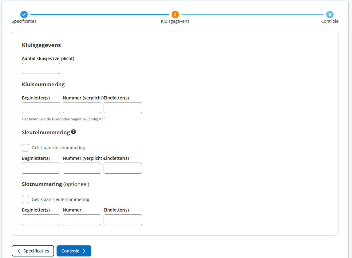 Het sleutelnummer is ook verplicht, maar kan gelijk zijn aan het kluisje. Het sleutelnummer en slotnummer worden op dezelfde manier gegenereerd als het kluisje.