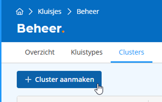 Op het tabblad 'Clusters' kunnen nieuwe clusters worden aangemaakt en bestaande clusters gewijzigd of verwijderd worden.