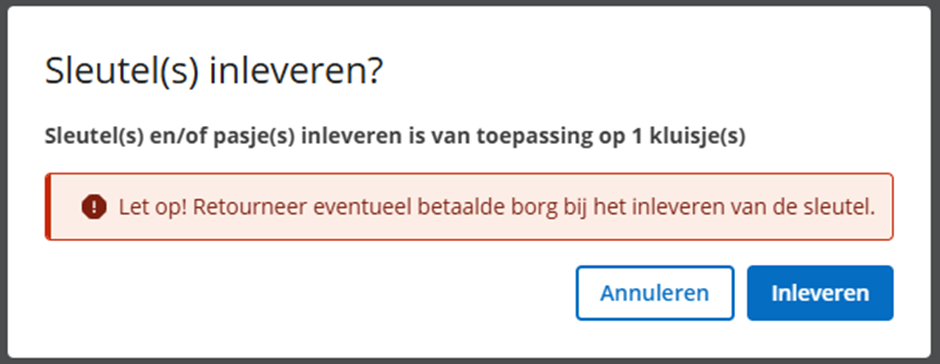 Als aangegeven wordt dat de sleutels nog niet ingeleverd zijn, kan dit later alsnog worden vastgelegd.